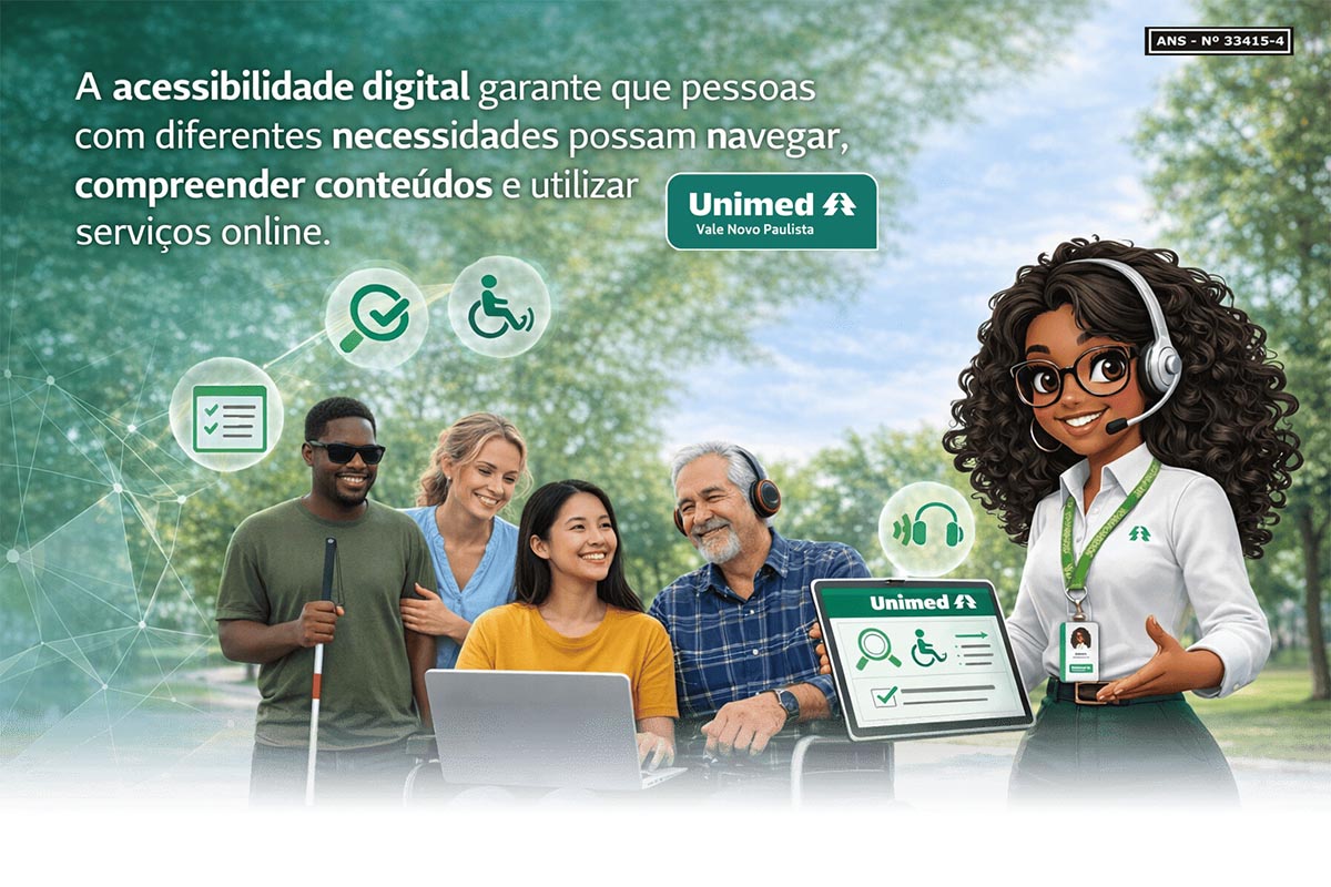 A Unimed Vale Novo Paulista entende a acessibilidade digital como parte essencial da experiência dos usuários e da responsabilidade institucional na oferta de serviços digitais inclusivos.